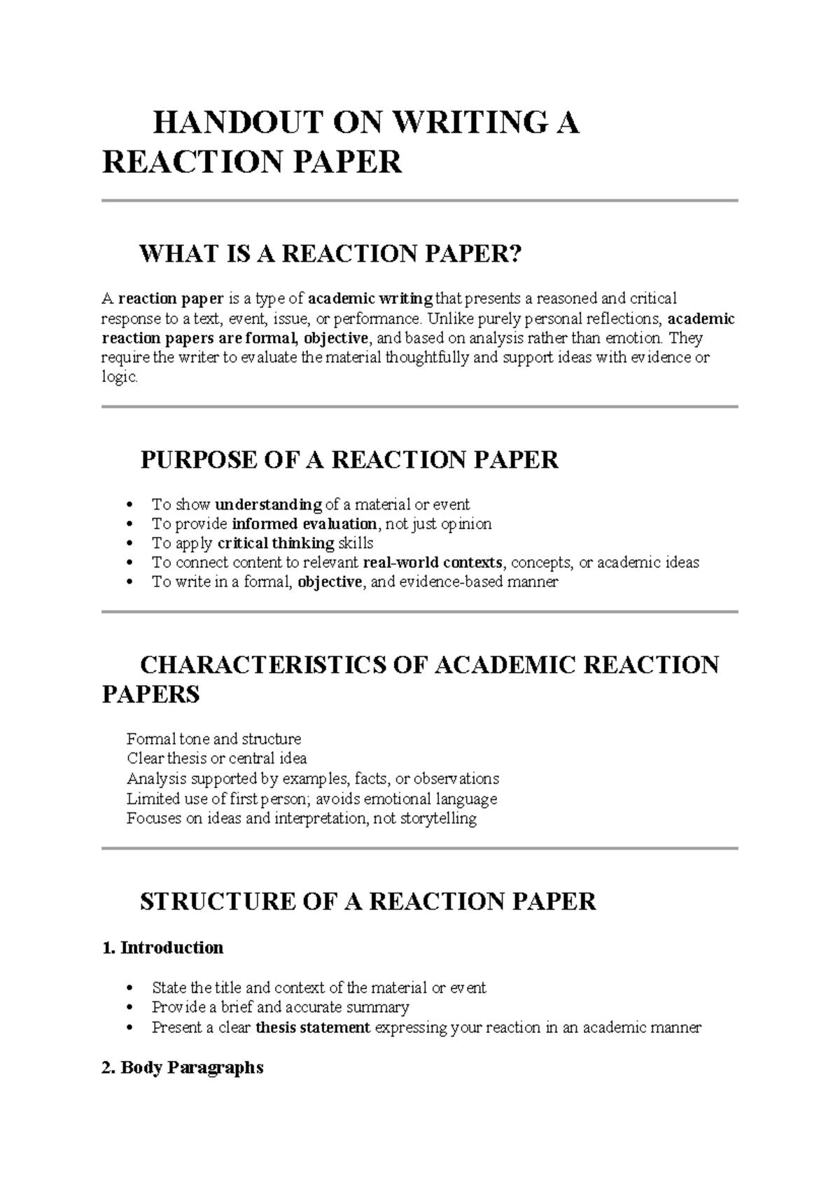 Writing a Reaction Paper: A Guide to Academic Analysis - Studocu