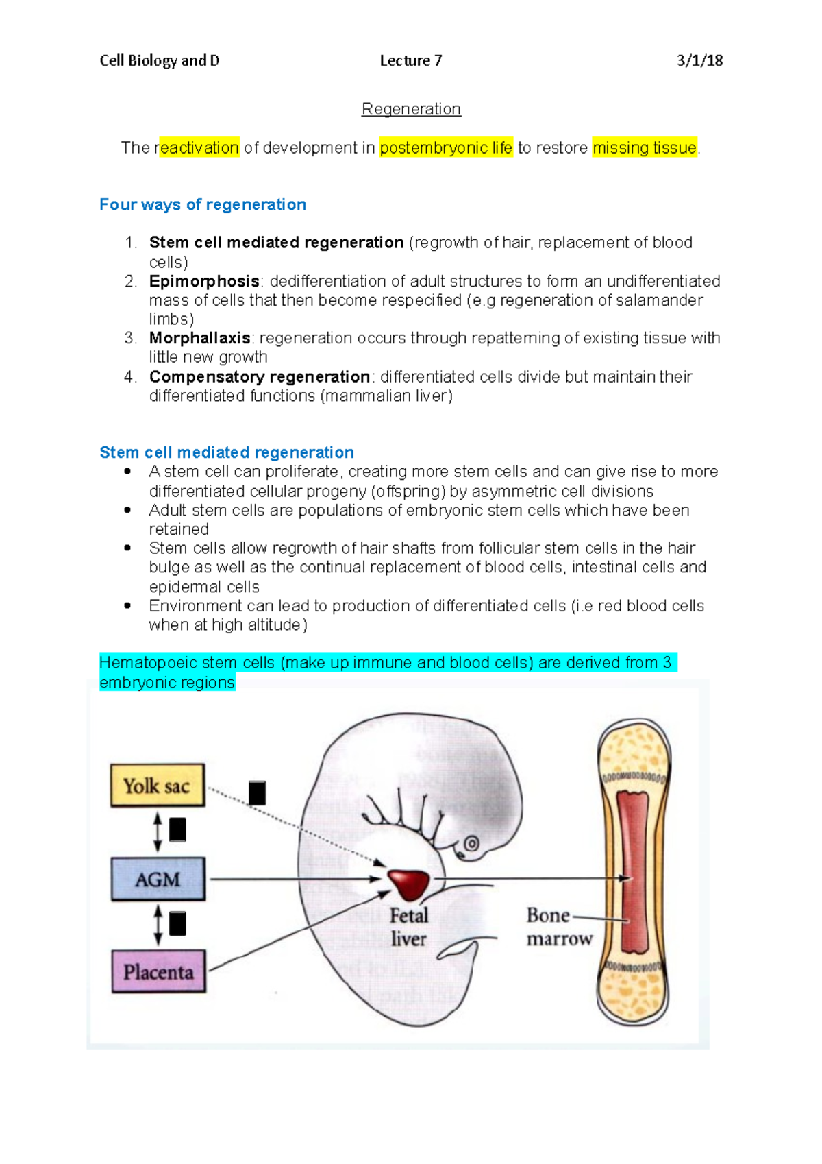 Lecture 7 Regenaration - Cell Biology and D Lecture 7 3/1/18 ...