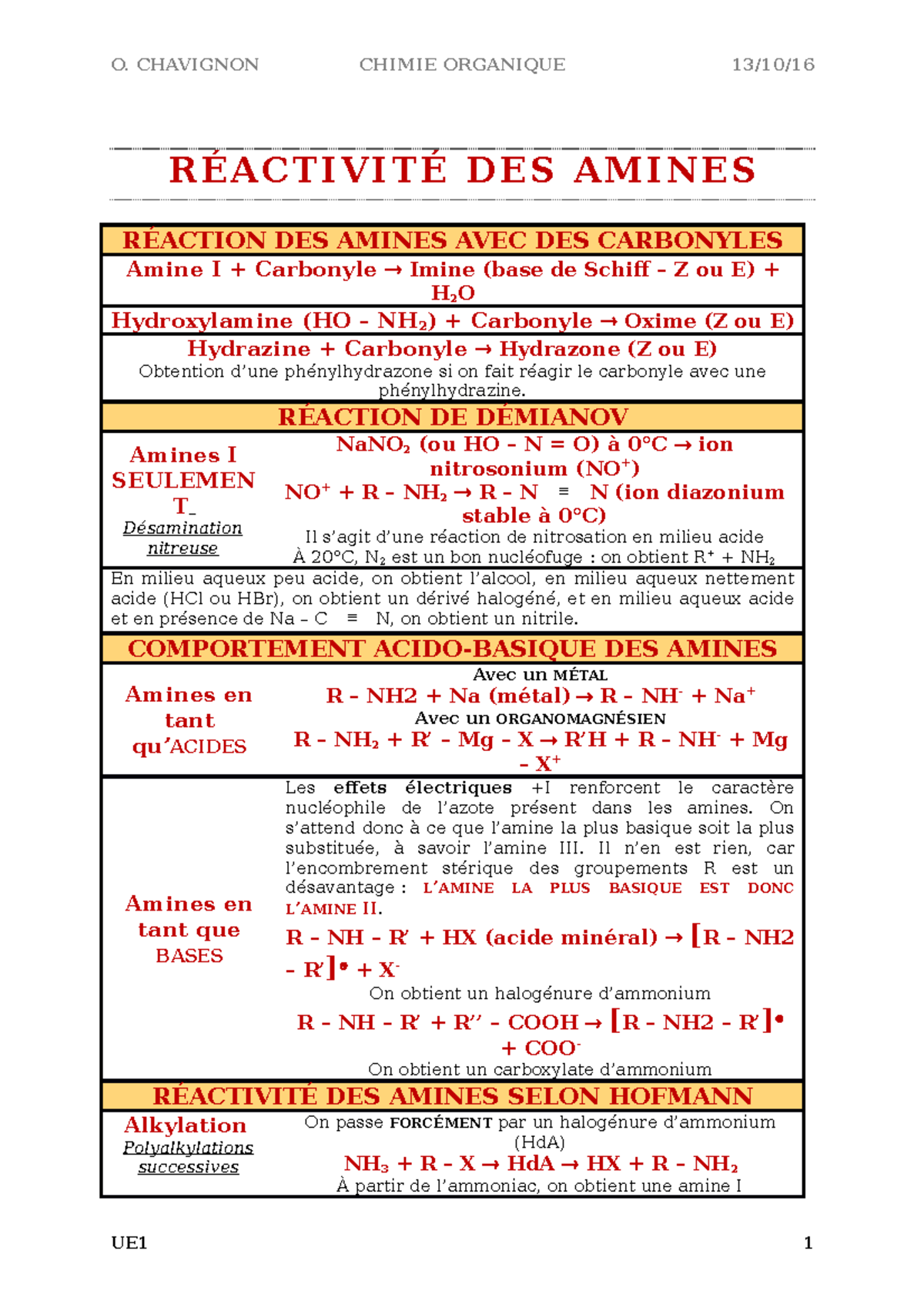 CHIMIE ORGANIQUE : LES AMINES - O. CHAVIGNON CHIMIE ORGANIQUE 13/10 ...