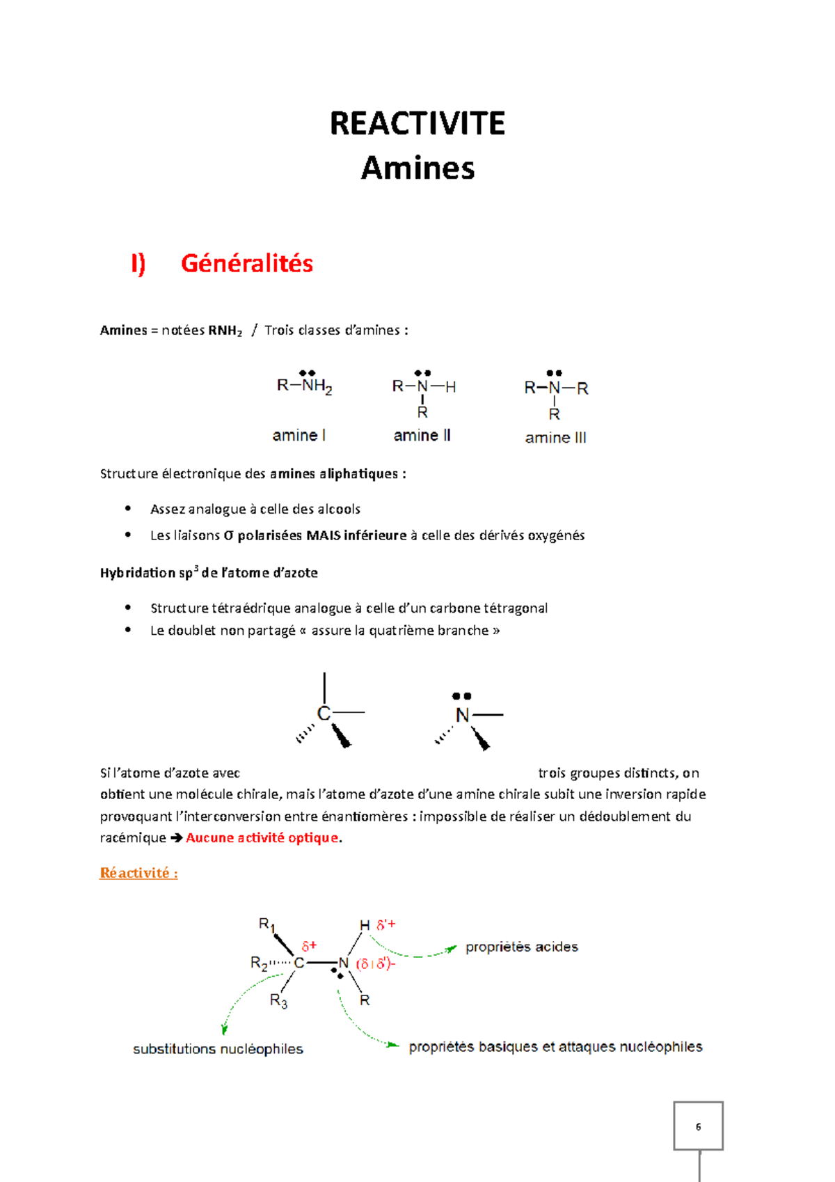 Réactivité 2. Amines - REACTIVITE Amines I) Généralités Amines = notées ...