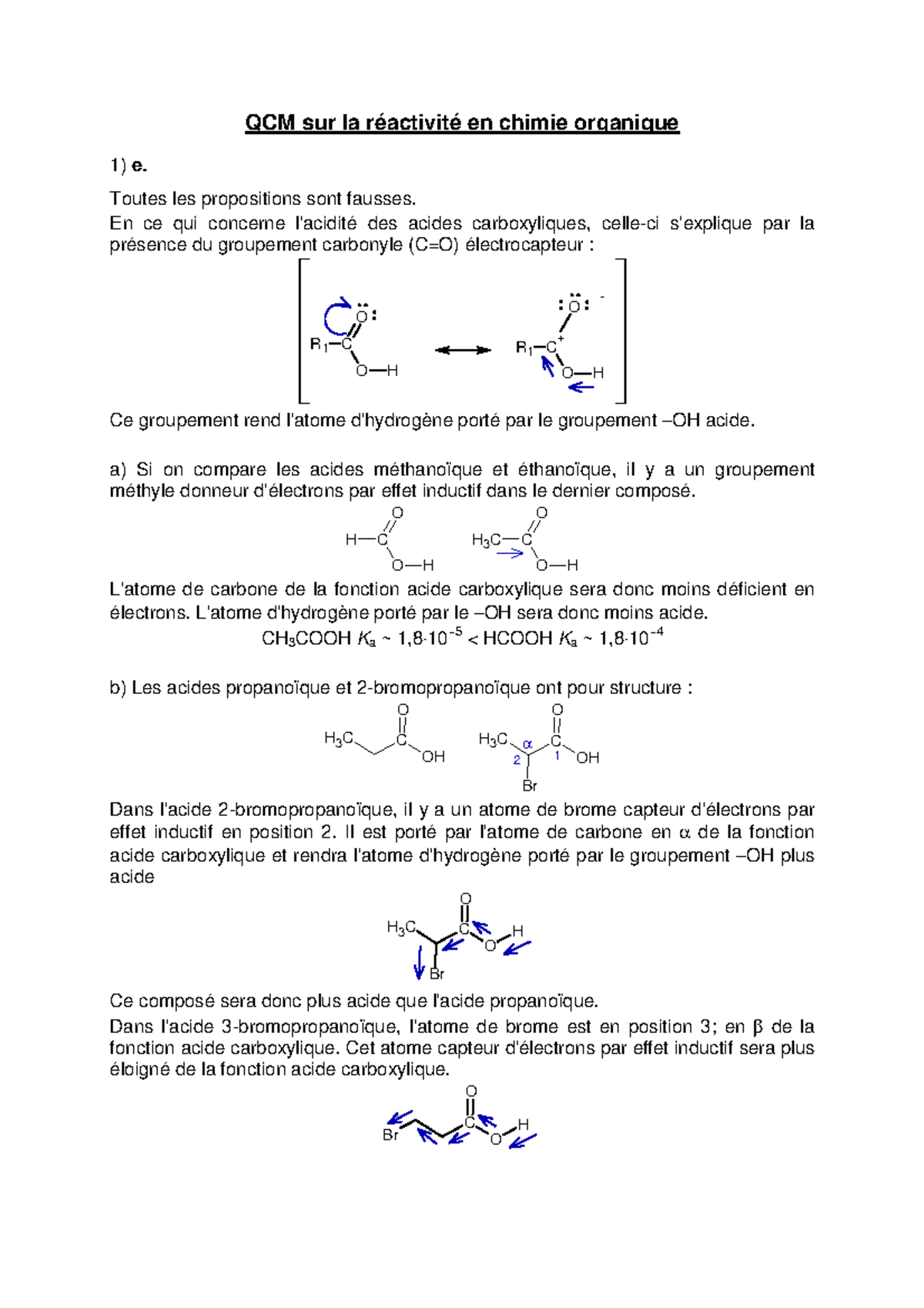 Solutions QCM réactivité en chimie organique - QCM sur la réactivité en ...