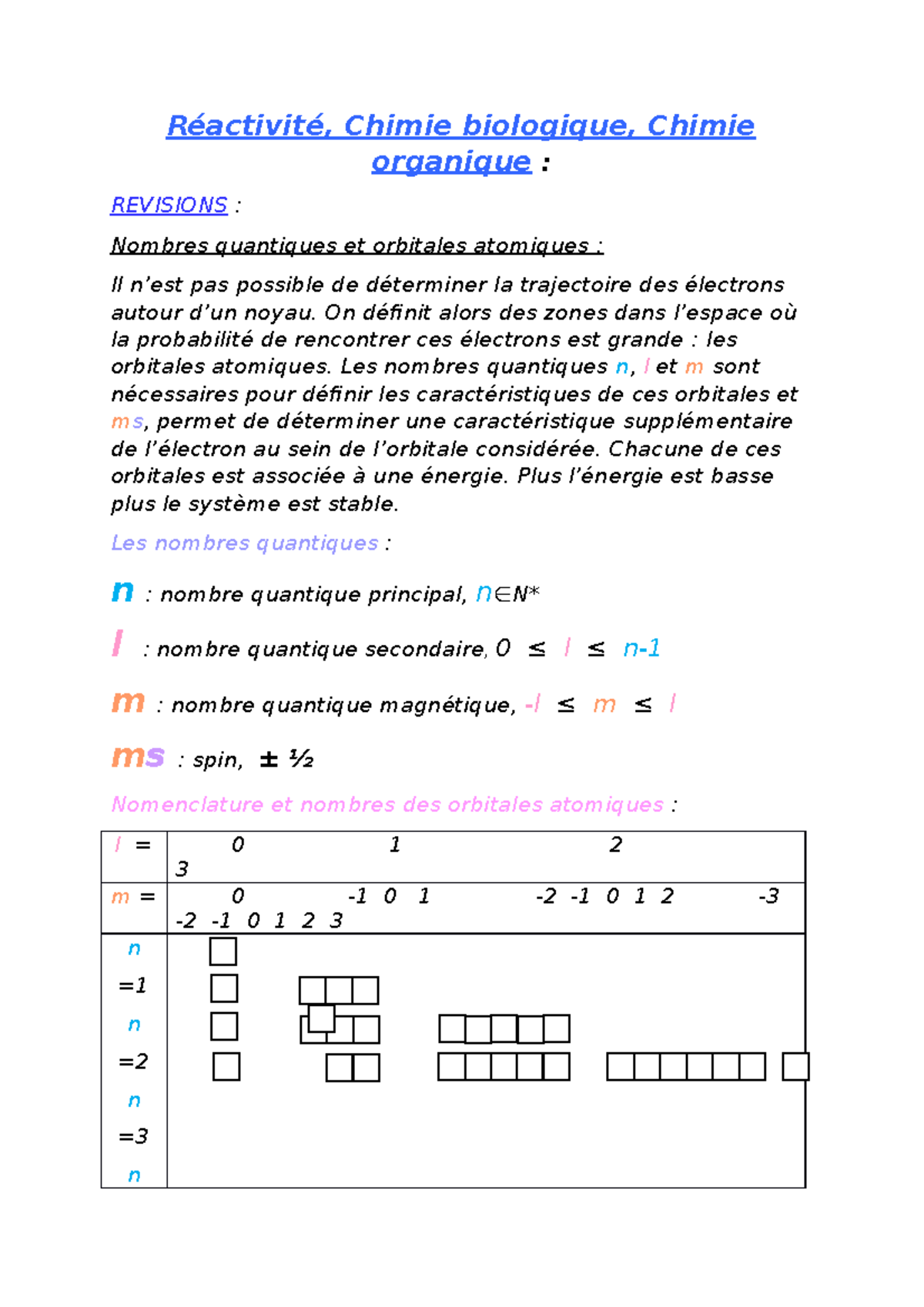 Réactivité - Notes de cours 1 - Réactivité, Chimie biologique, Chimie ...