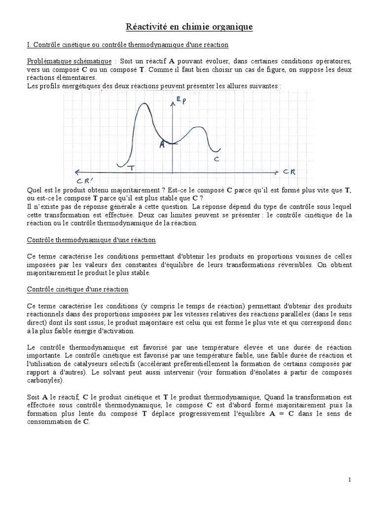 Réactivité en chimie organique : contrôle cinétique et thermodynamique ...