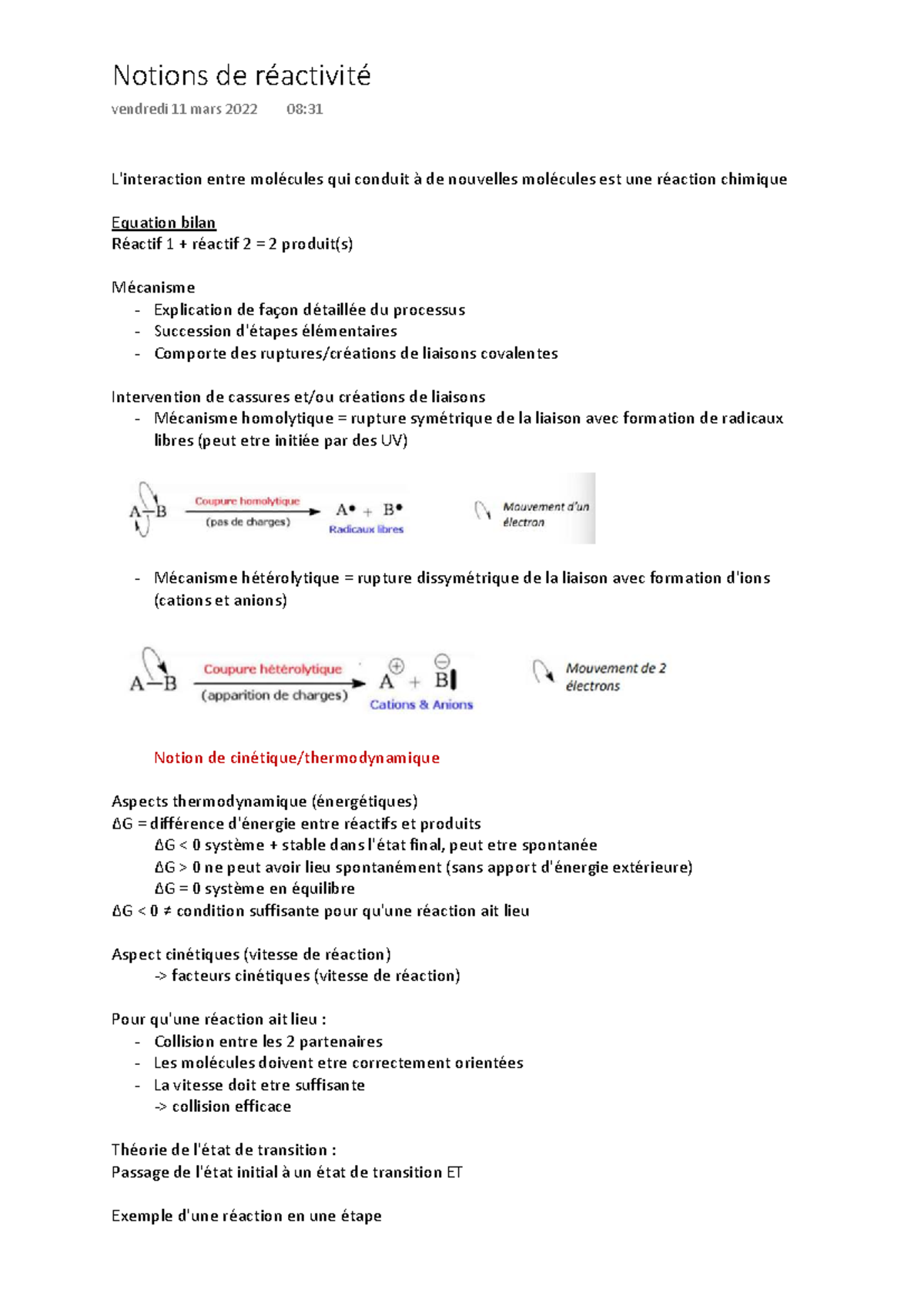 Notion de Réactivité - Cours de Chimie (Réactions et Mécanismes) - Studocu