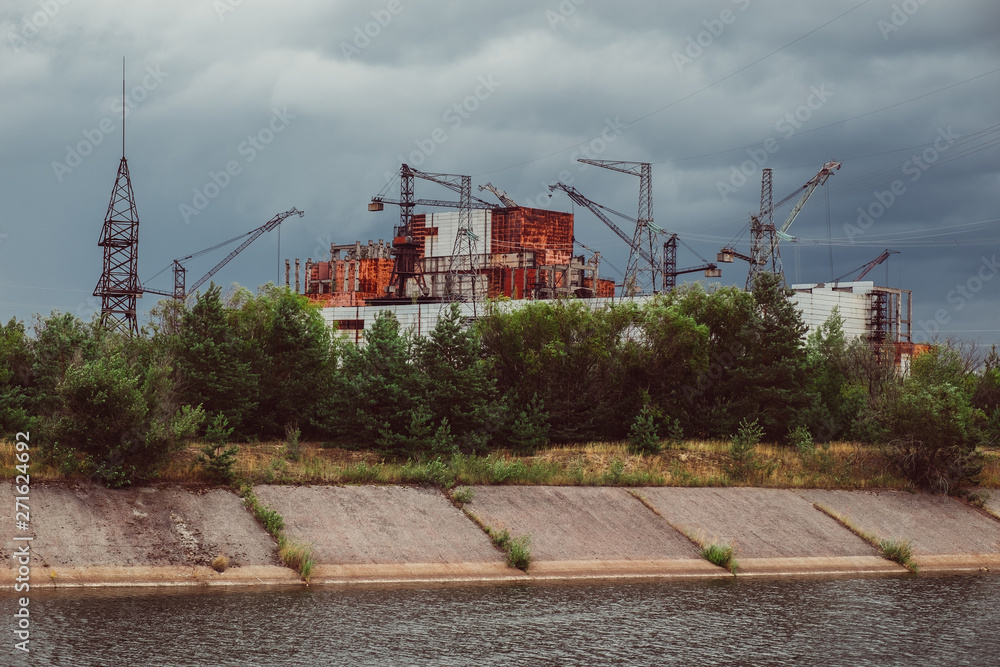 Chernobyl Nuclear Power Plant after atomic reactor explosion. Destroyed ...