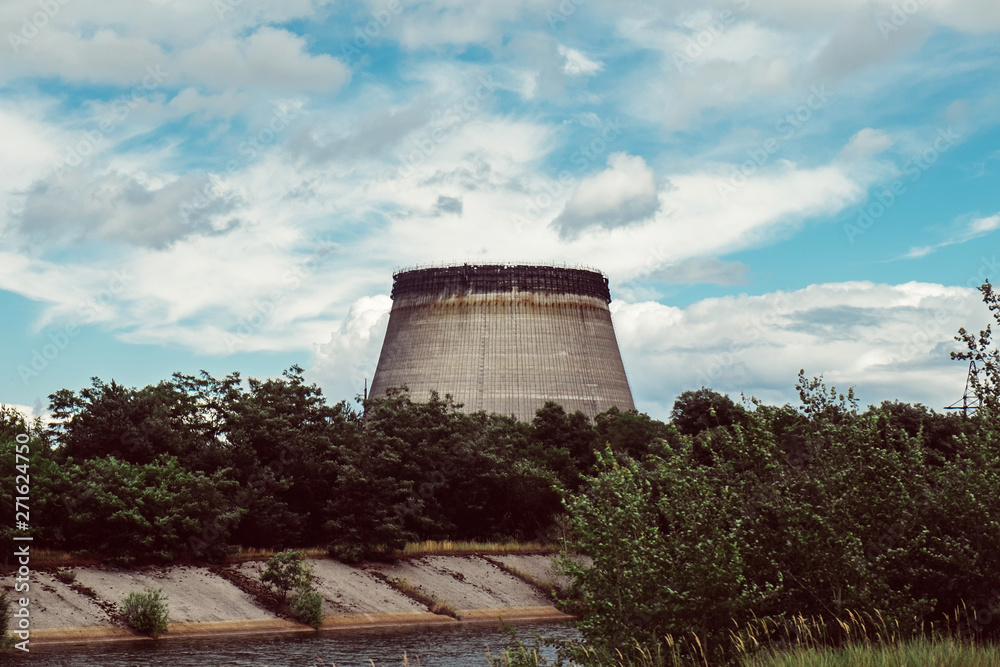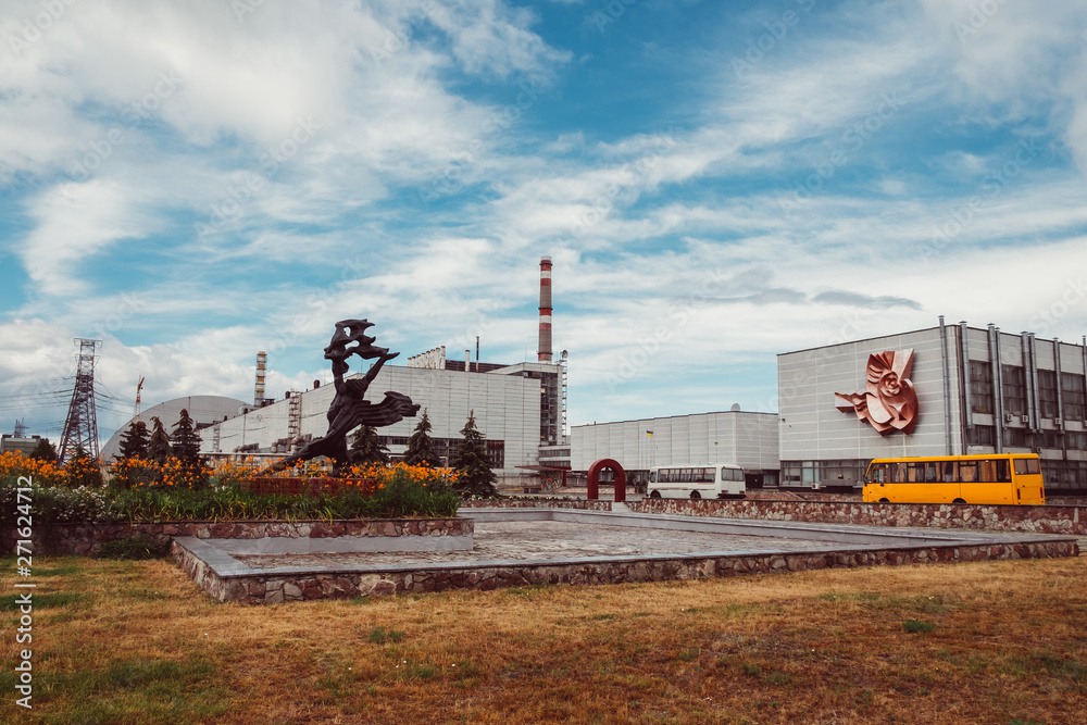 3D render:Chernobyl ruins of nuclear power plant burning radioactively ...