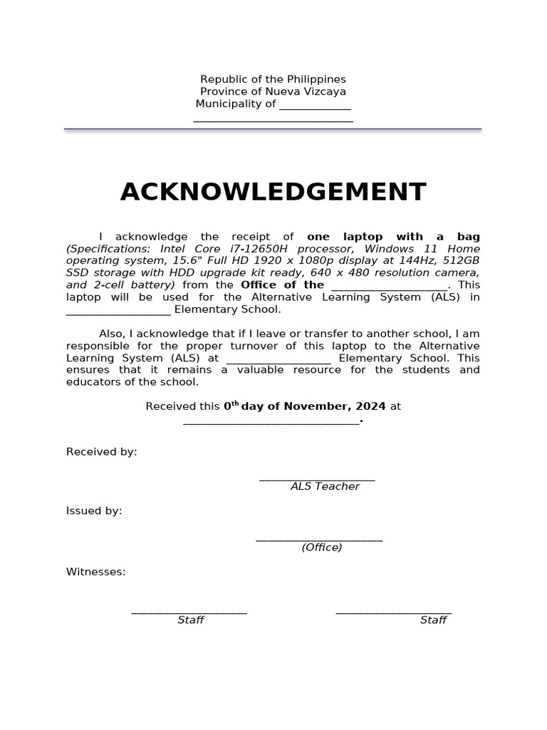 Acknowledgement Of Receipt Template - prntbl.concejomunicipaldechinu.gov.co