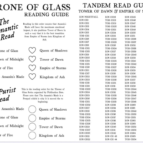 Printable Reading Guide for Throne of Glass Series and Tandem Read ...