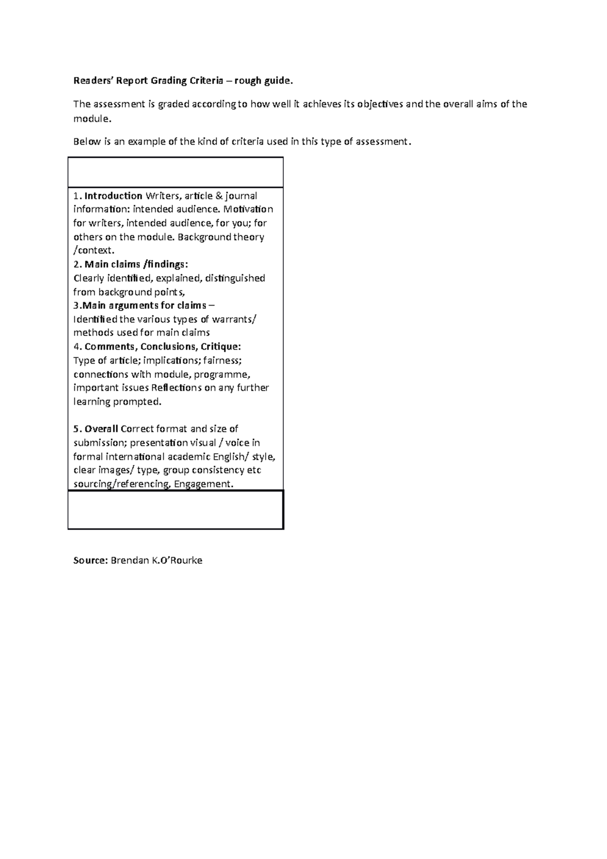 Grading Criteria Readers Report - Readers’ Report Grading Criteria ...
