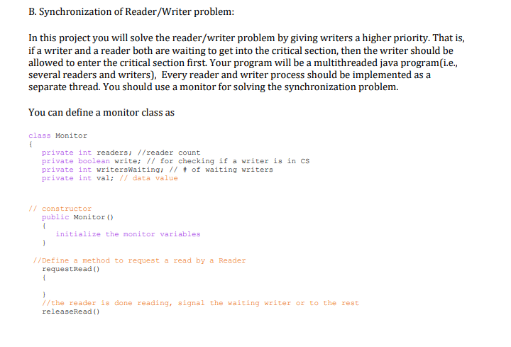 Solved B. Synchronization of Reader/Writer problem: In this | Chegg.com