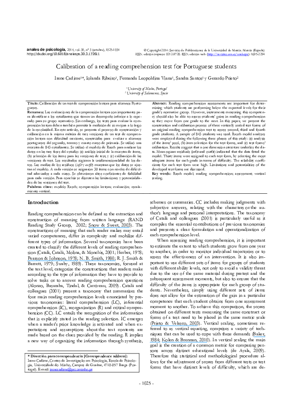 (PDF) Calibration of a reading comprehension test for Portuguese ...