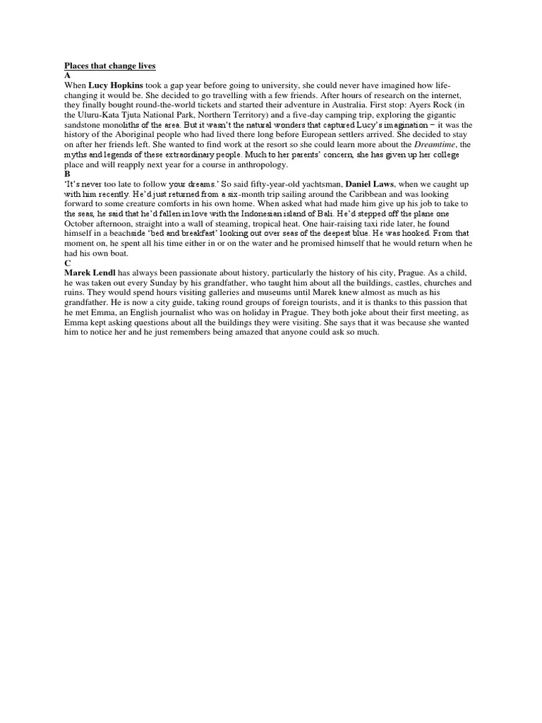 Cambridge English b2 First Reading Part 2 | PDF | English Language | Verb