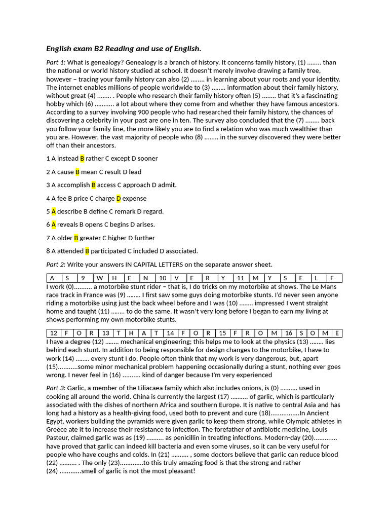 B2 Reading Comprehension Exercises: Strategies & Practice - Studocu