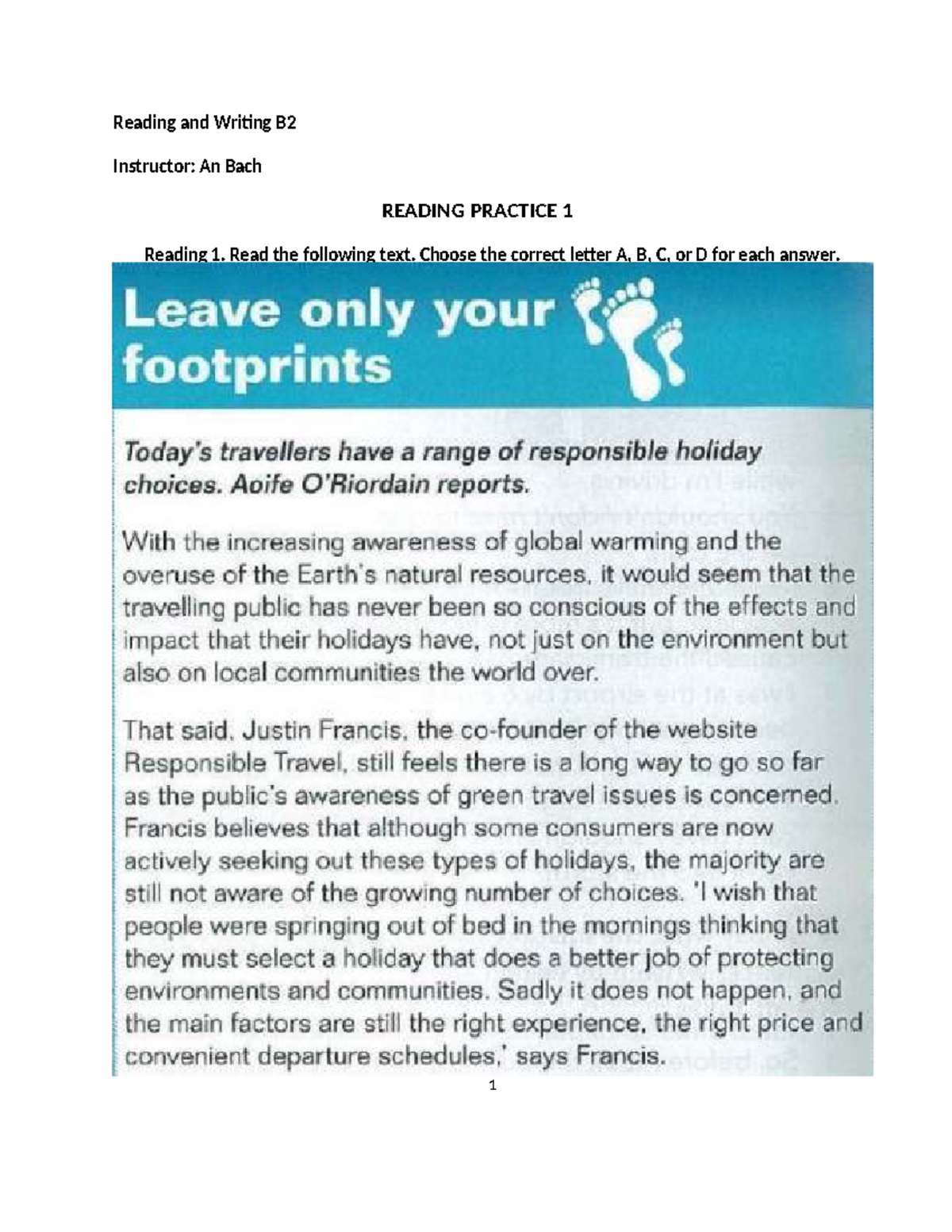Reading and Writing B2 Practice 1 - English - Reading and Writing B ...