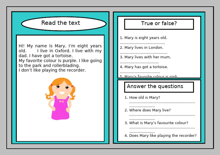 Reading comprehension for kids exercise 5 – Artofit