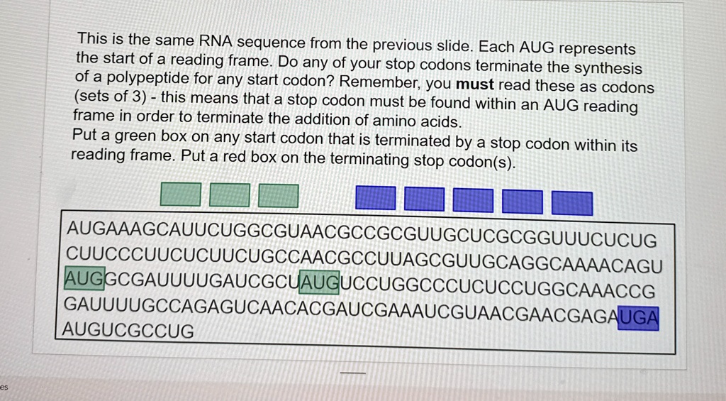 this is the same rna sequence from the previous slide each aug ...