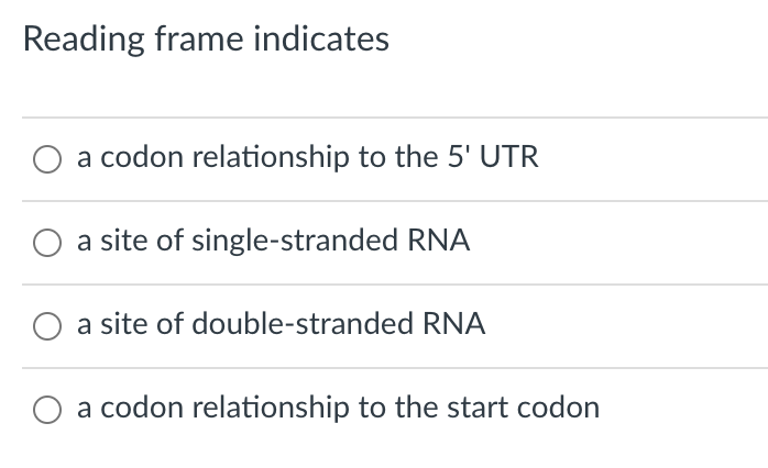 Solved Reading frame indicates a codon relationship to the | Chegg.com