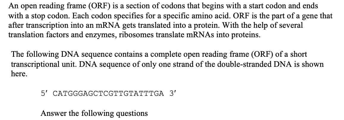 Solved In a gene, an Open Reading Frame (ORF) is the protein | Chegg.com