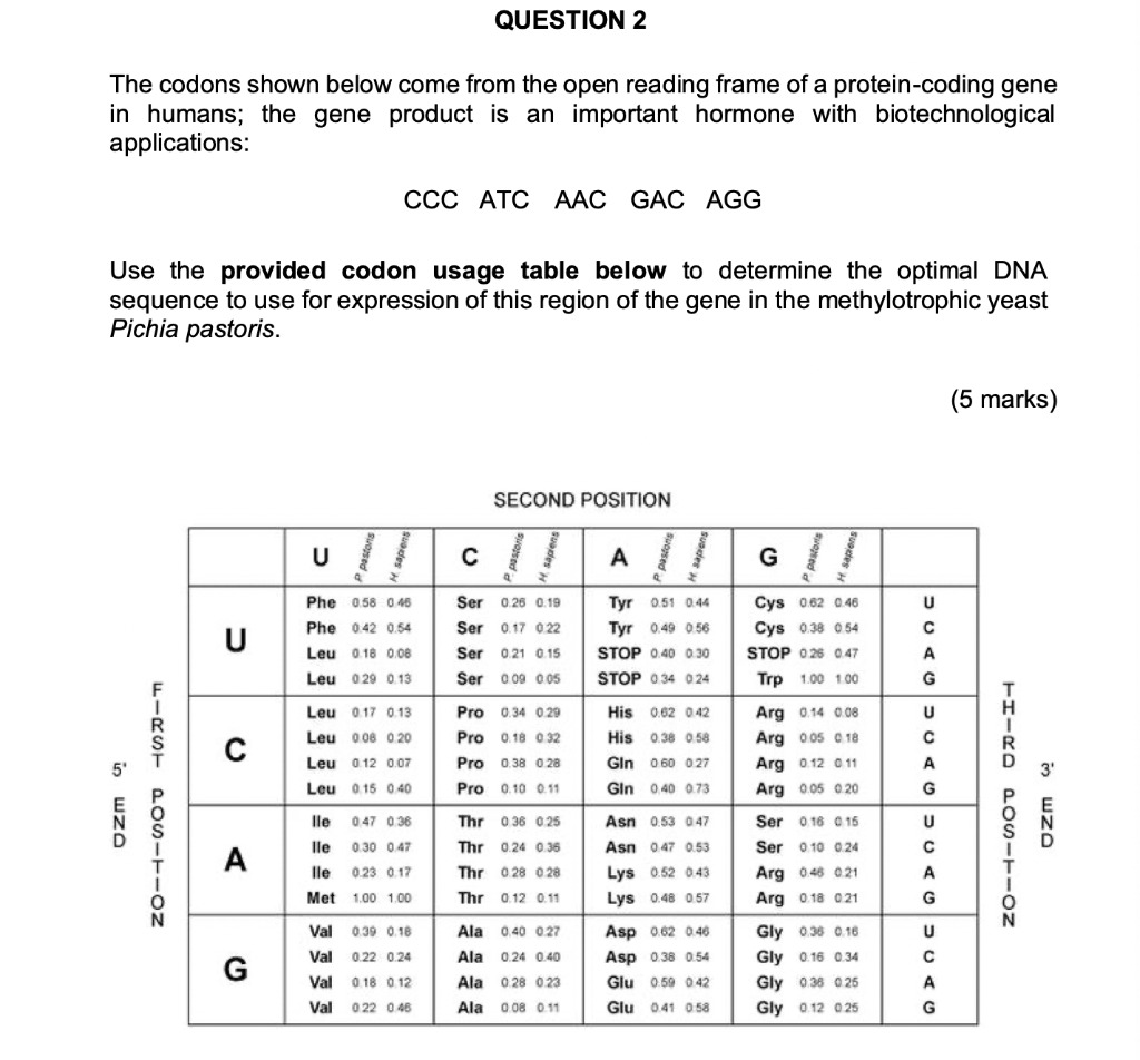 Solved Q2 An open reading frame (ORF) is a section of codons | Chegg.com