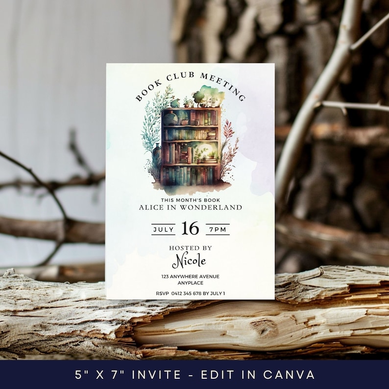 Book Club Meeting Invitation, CANVA TEMPLATE, Bookshelf Printable ...