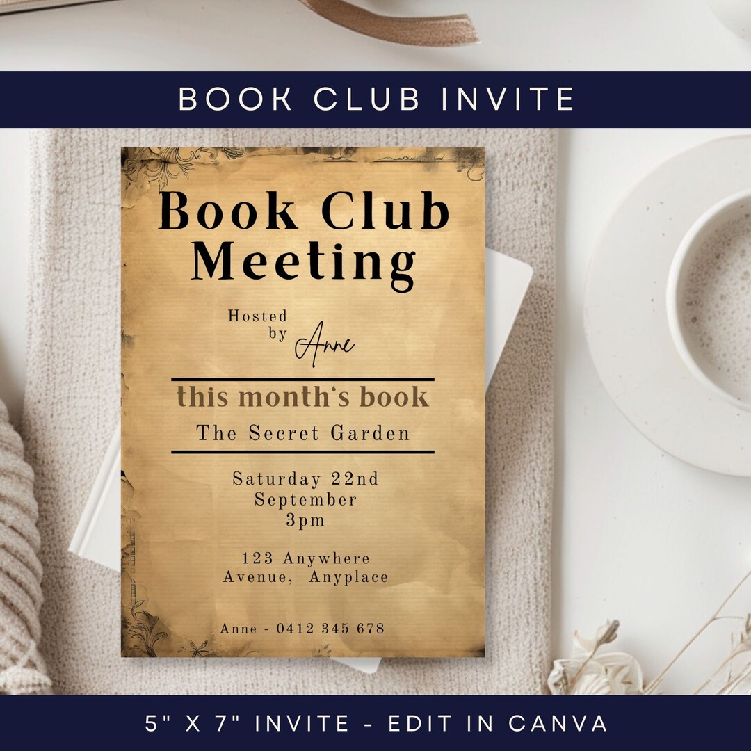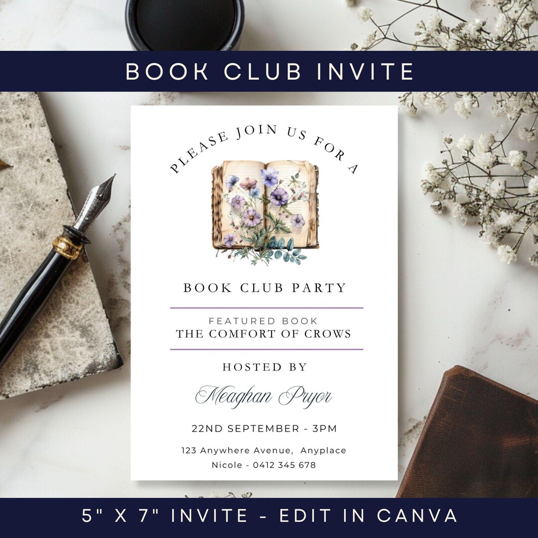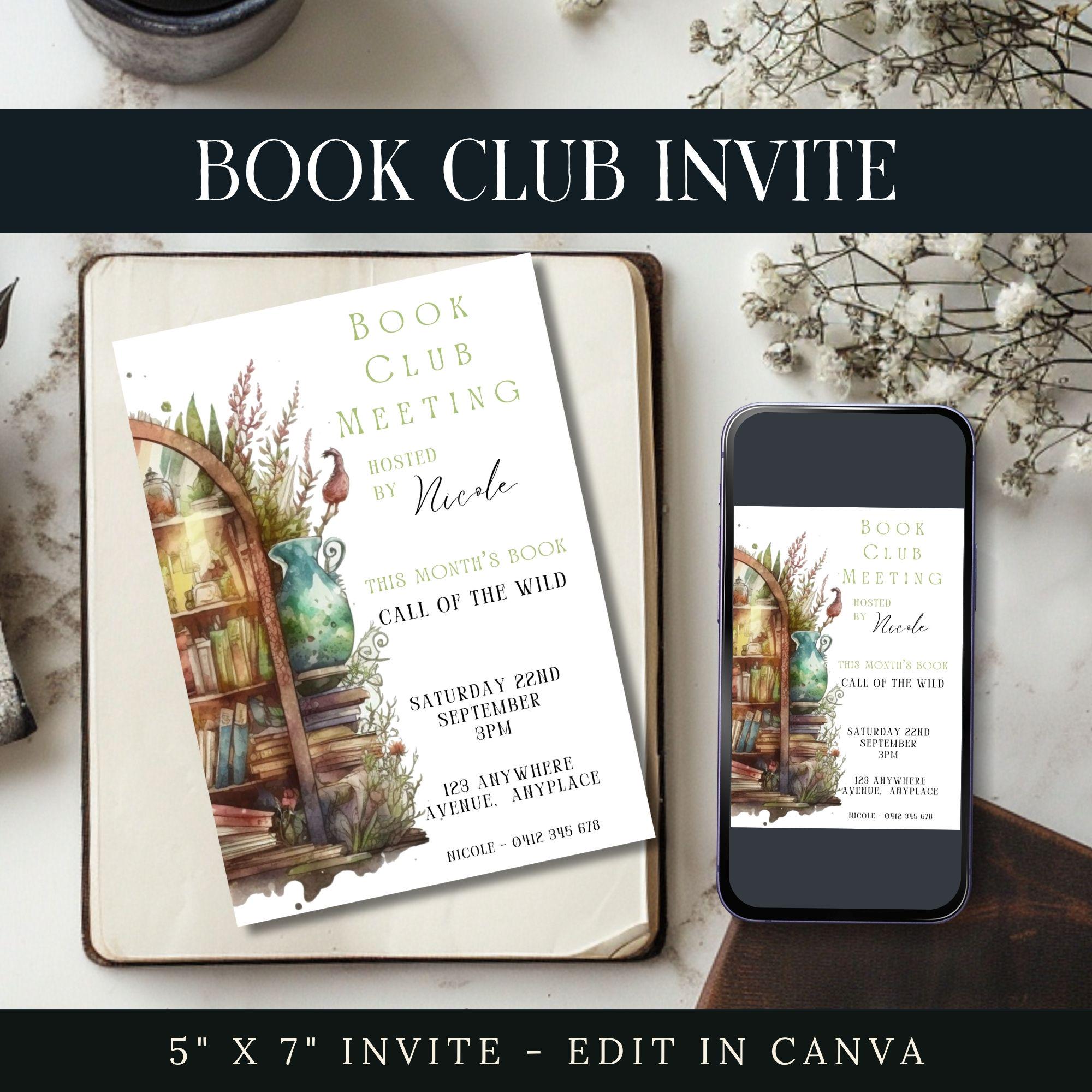 Book Club Invitation Template, CANVA, Editable Invite, Meeting ...