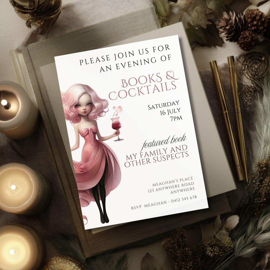 Book Club Invite Template, Books & Cocktails Party Digital Invite ...