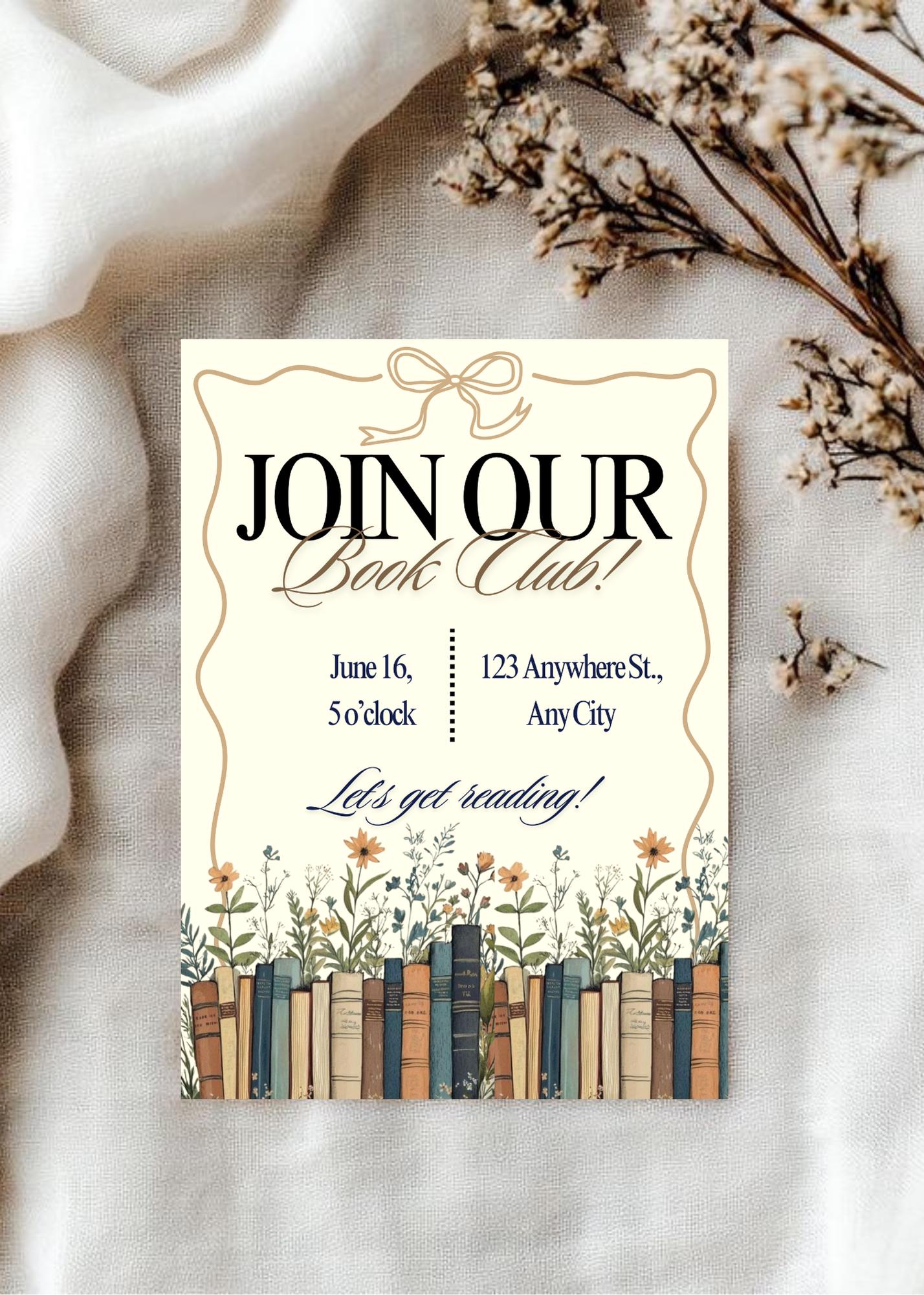 Book Club Invitation Template, CANVA, Editable Invite, Digital ...