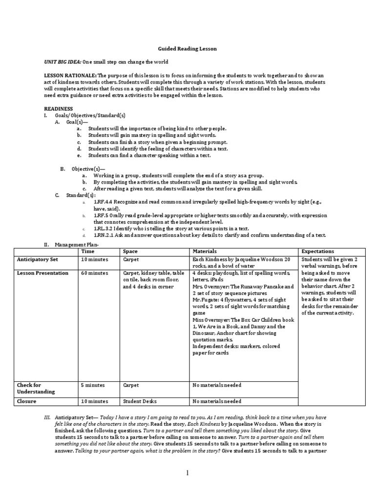 Early Guided Reading Lesson Plan Example at Samantha Fredricksen blog
