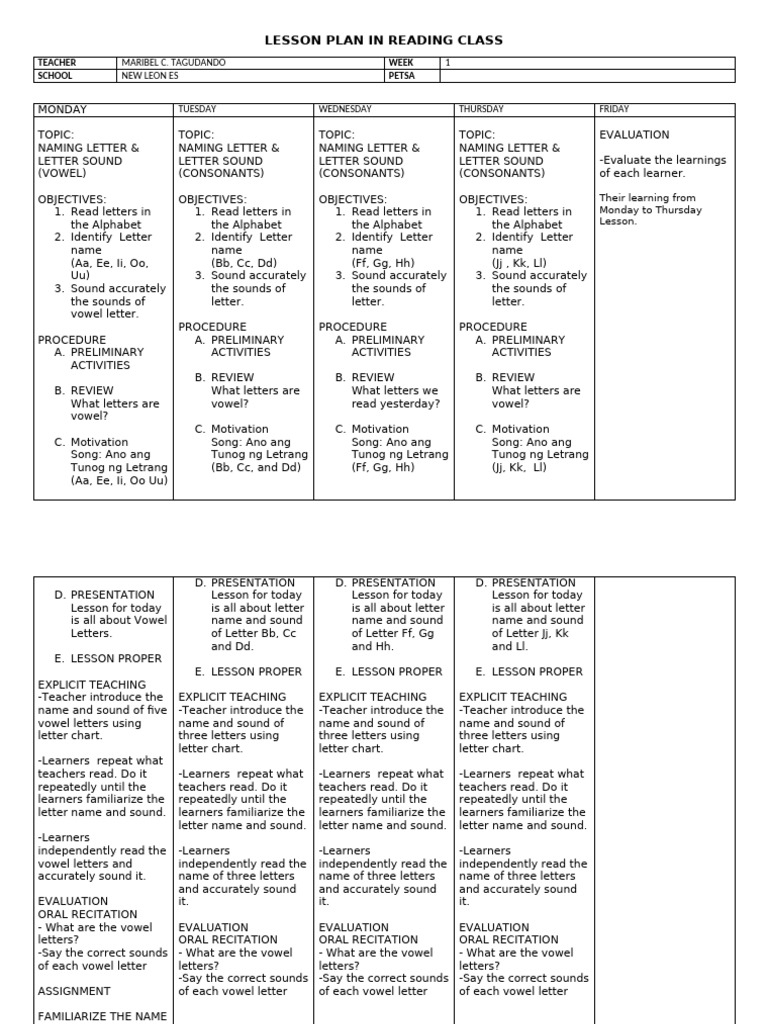 Reading Class Lesson Plan: Letters & Sounds | PDF | Consonant | Alphabet