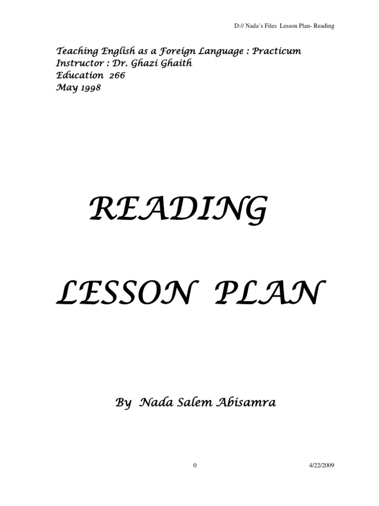 Reading Lesson Plan | PDF | Lesson Plan | Teachers