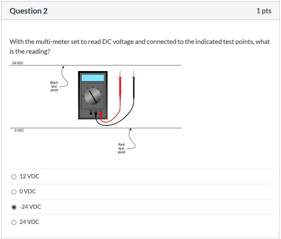 Solved Question 1 1 pts With the multi-meter set to read DC | Chegg.com