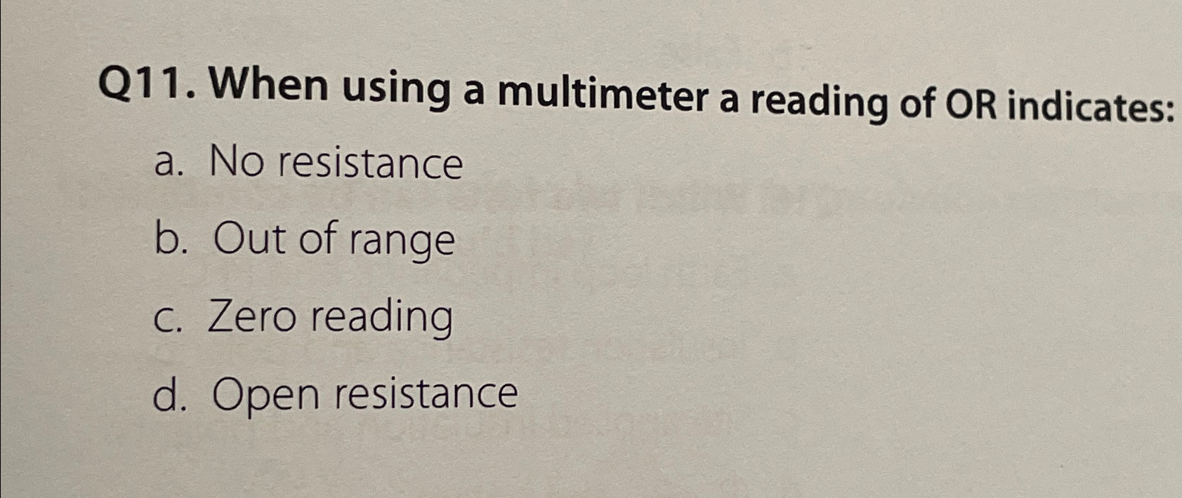 Solved Q11. When using a multimeter a reading of OR | Chegg.com