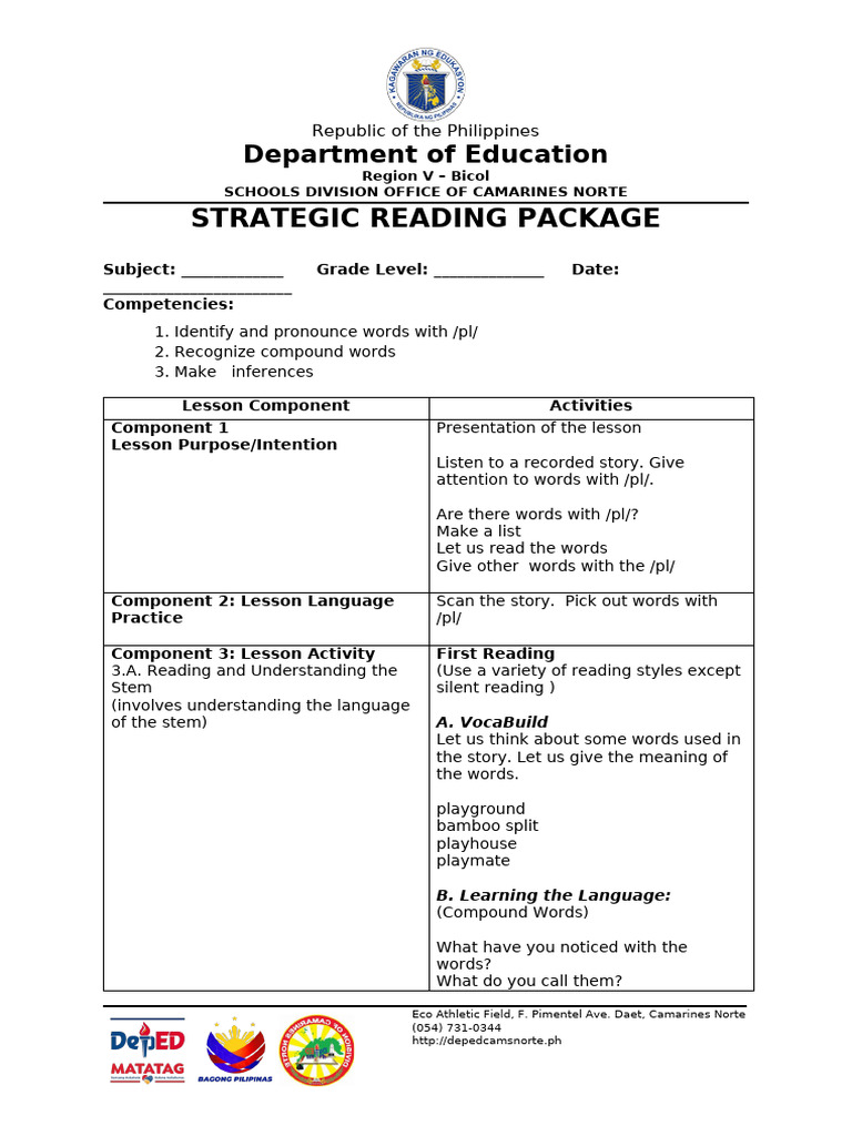 Final-Format-of-Sample-Strategic-Reading-Package | PDF | Learning ...