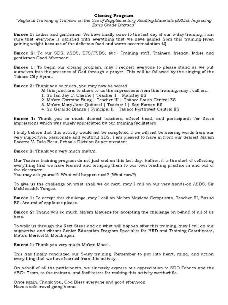 Closing Program Script | PDF | Teachers