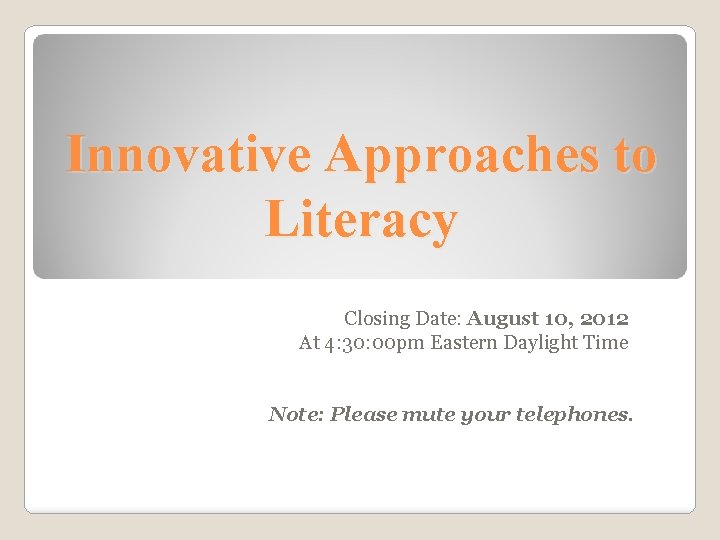 Innovative Approaches to Literacy Closing Date August 10