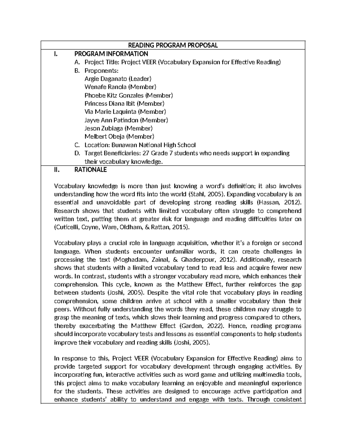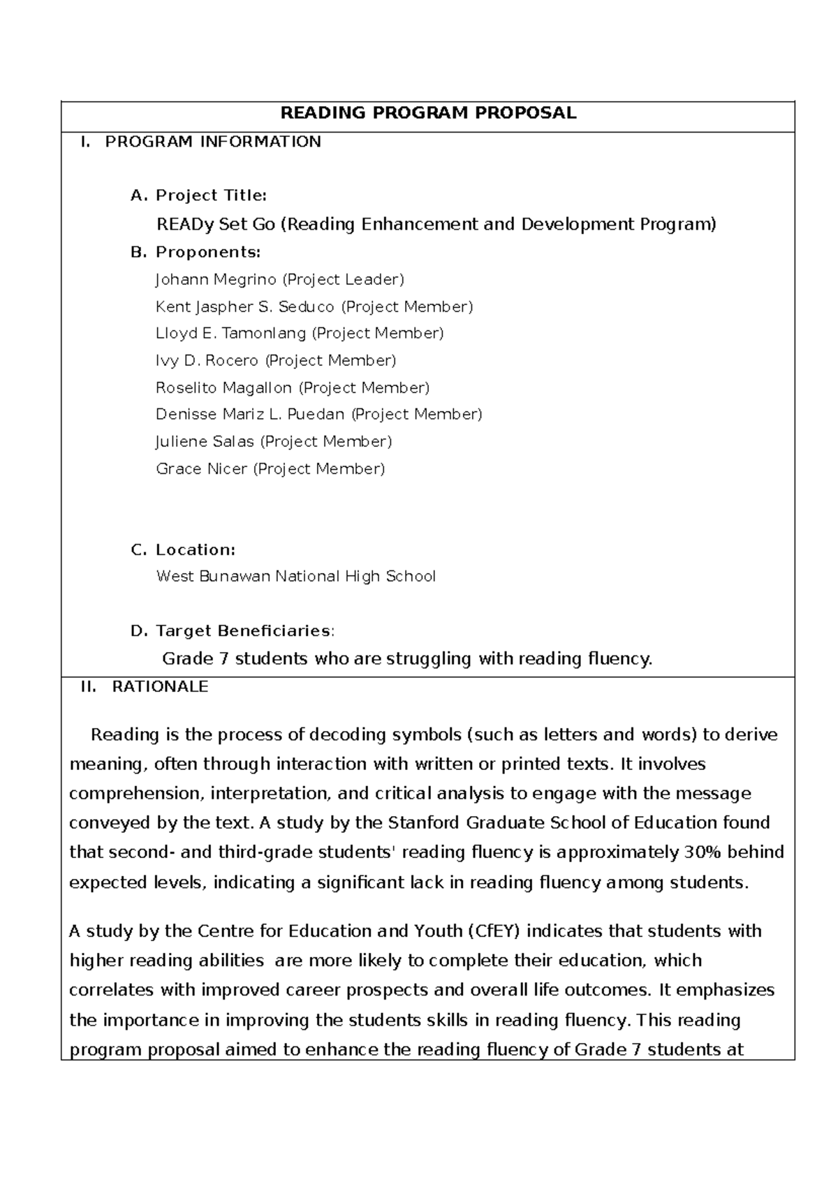 Group 4 Reading Program Proposal 1 - READING PROGRAM PROPOSAL I ...