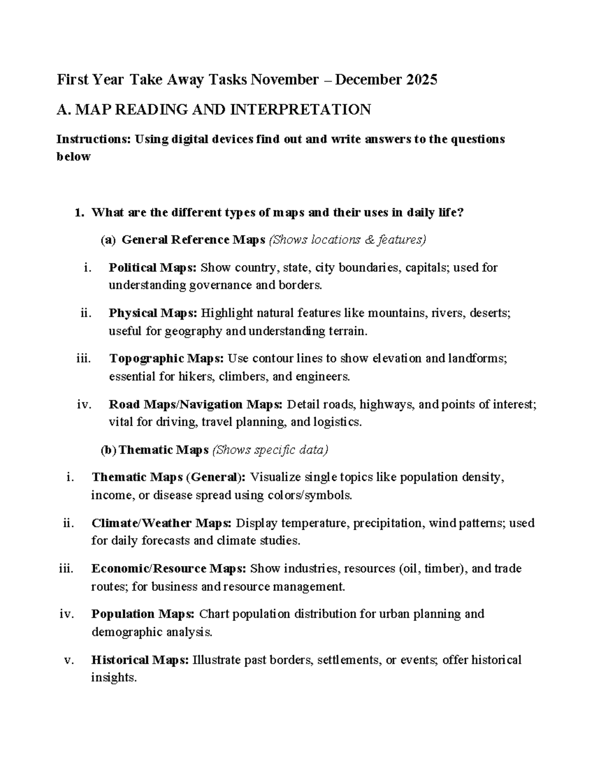 First Year Take Away Tasks: Map Reading & Interpretation Guide - Studocu