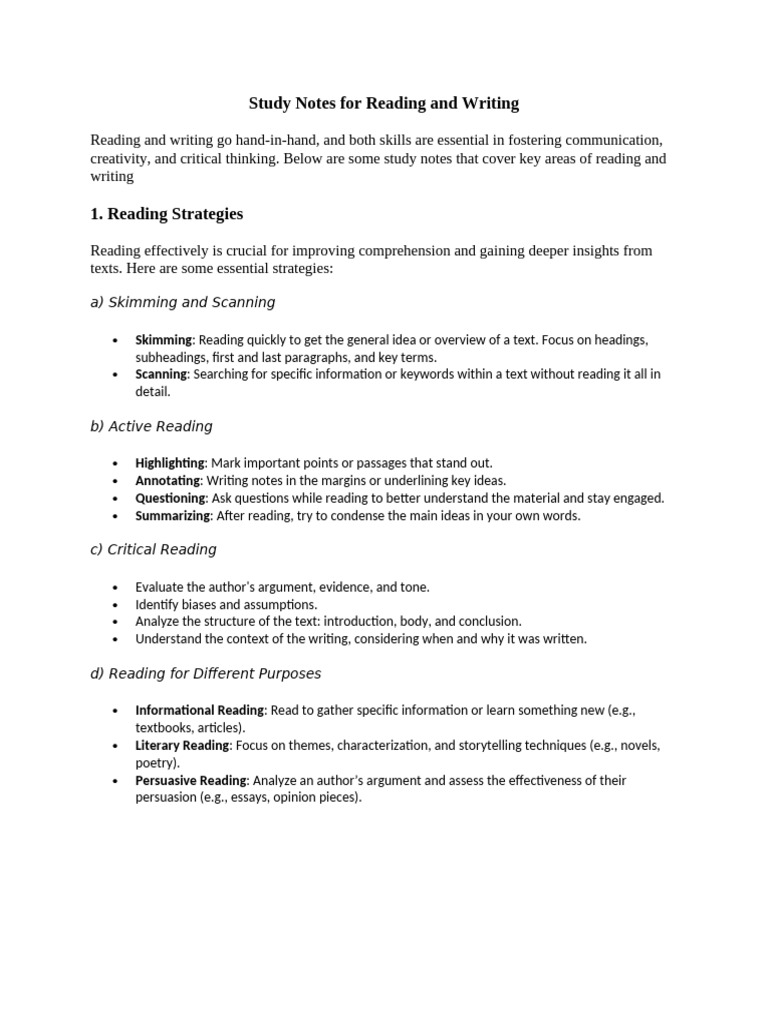 Study Notes For Reading and Writing | PDF | Proofreading | Reading ...