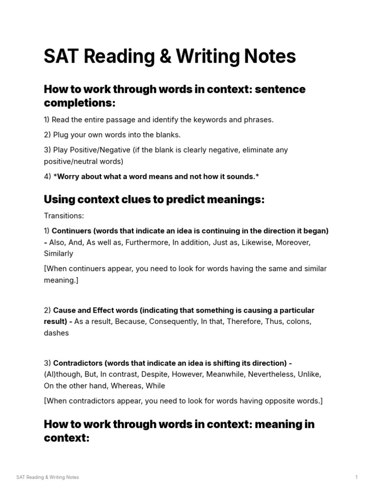 SAT Reading & Writing Notes | PDF | Paragraph | Word