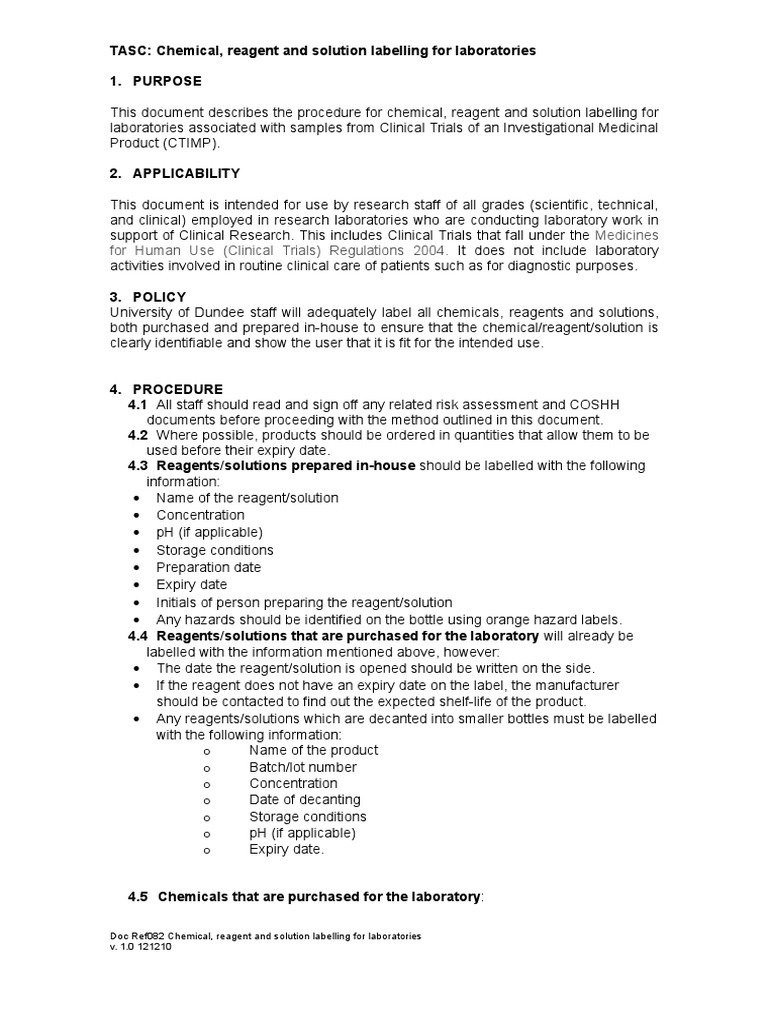 Ref 082 Reagent Labelling | PDF | Clinical Trial | Health Sciences