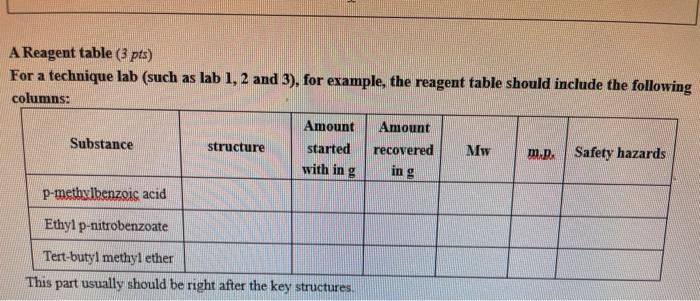 1. [Completing the Reagent Table for Prelab] | Organic Chemistry Lab ...