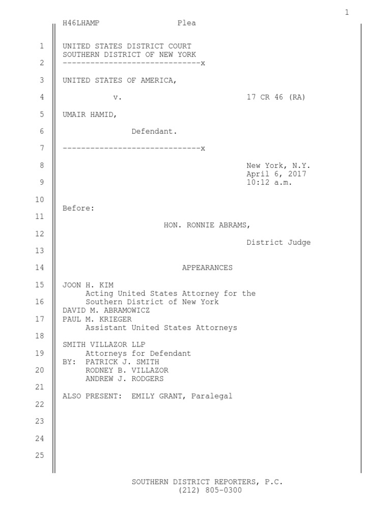 Umair Hamid - Court transcript | Plea | United States Federal Probation ...