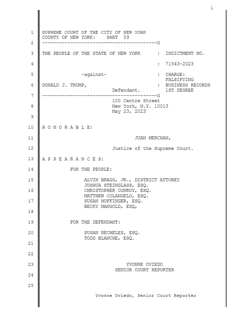 Trump New York Feb 2024 Hearing Transcript Blanche Criminal Trial Bragg ...