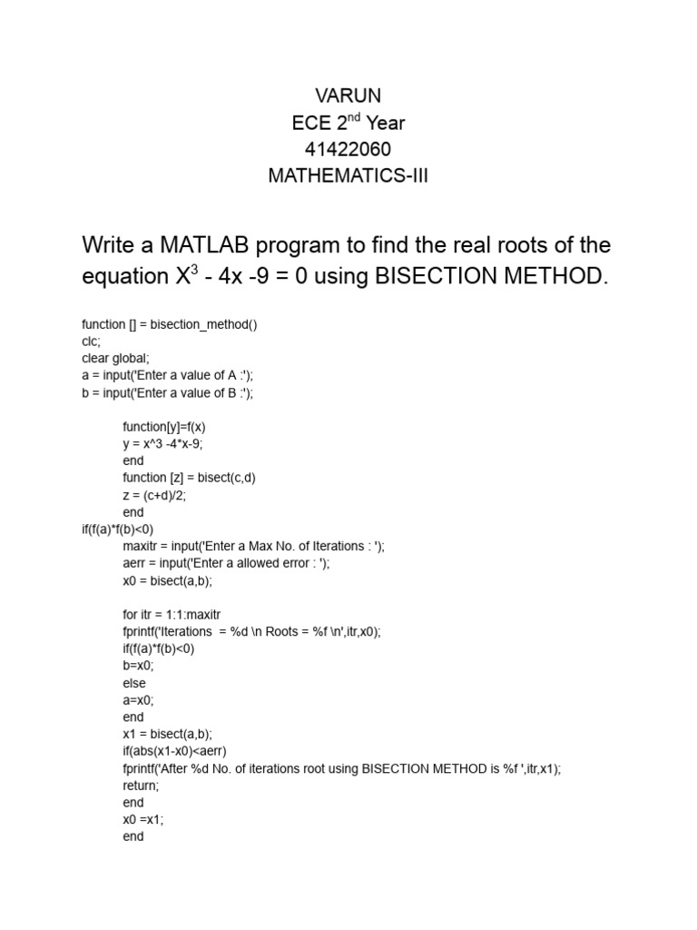 Write A MATLAB Program To Find A Real Roots of The Equation X3 - 4x - 9 ...
