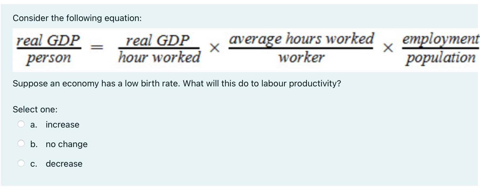 Solved Consider the following equation: real GDP person real | Chegg.com