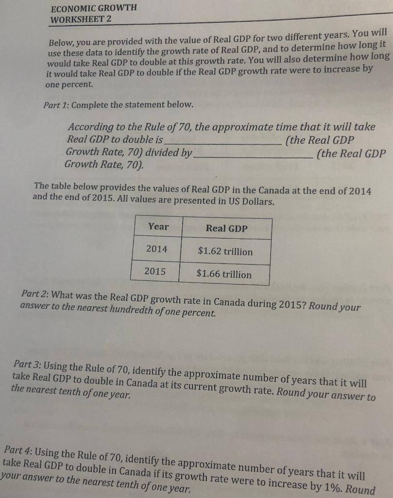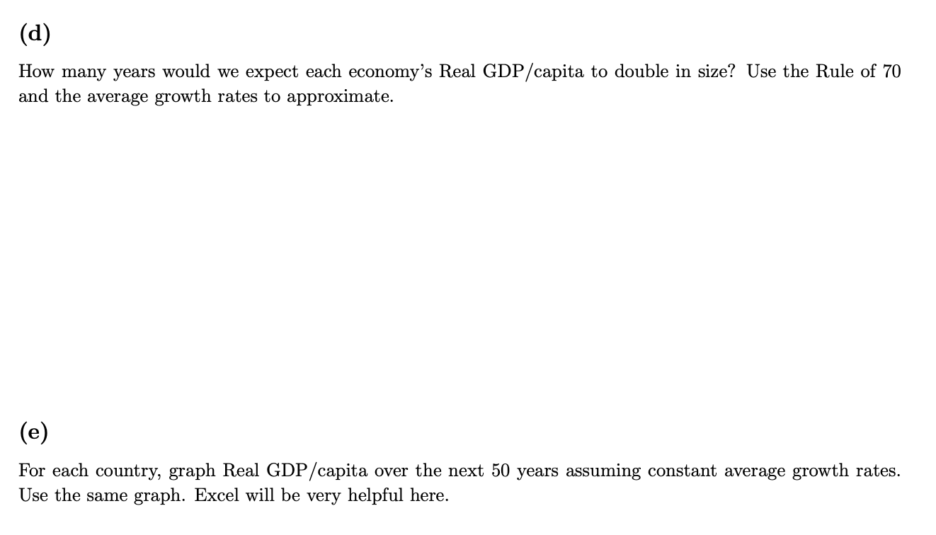 Solved Problem 2 (a) Fill in the data for Real GDP per | Chegg.com