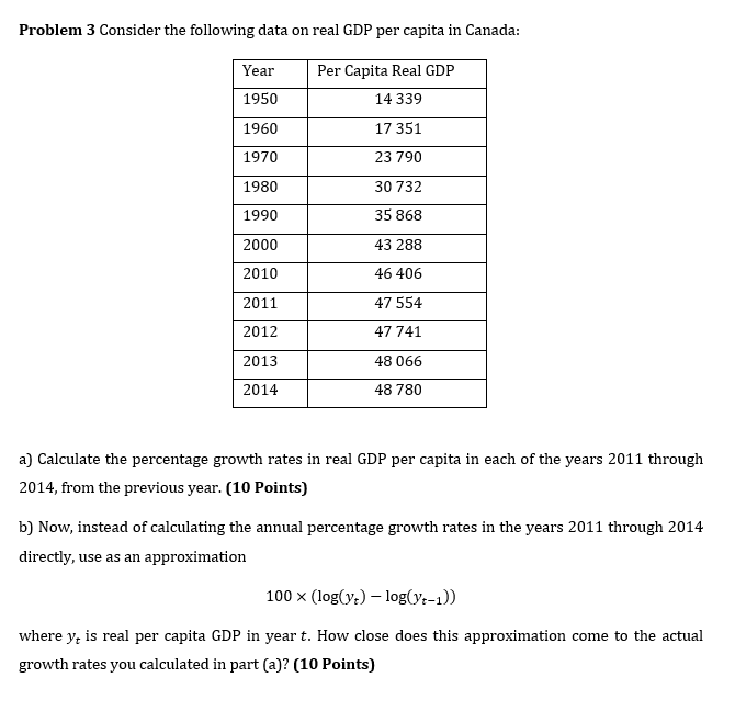 Solved Problem 3 Consider the following data on real GDP per | Chegg.com