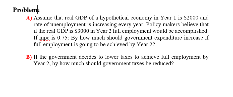 Solved Problem: A) Assume that real GDP of a hypothetical | Chegg.com