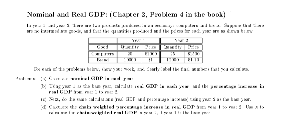 Solved Problem 2.(42 points) Real vs. Nominal GDP. Consider | Chegg.com