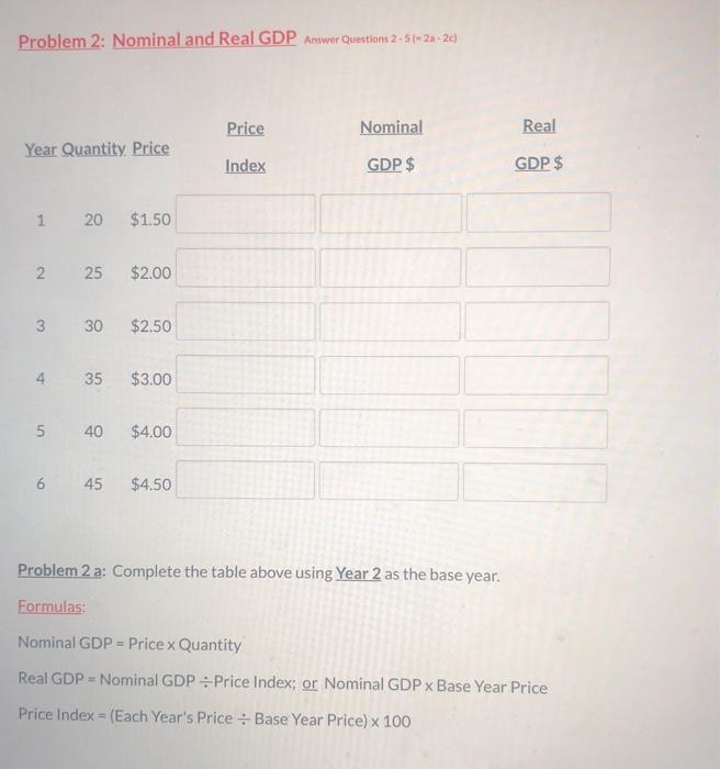Solved Problem 2: Nominal and Real GDP Answer Questions | Chegg.com